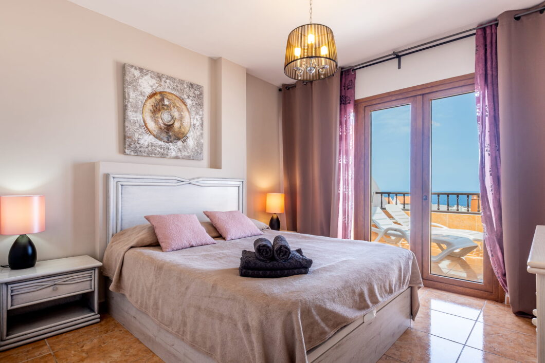 В гостиной уютный раскладывающийся диван, телевизор с кабельным телевидением, есть WI-FI. Из гостиной выход на большую террасу с двумя шезлонгами – для уединенного наслаждения теплым испанским солнышком, стол и стулья – с террасы великолепный вид на океан.